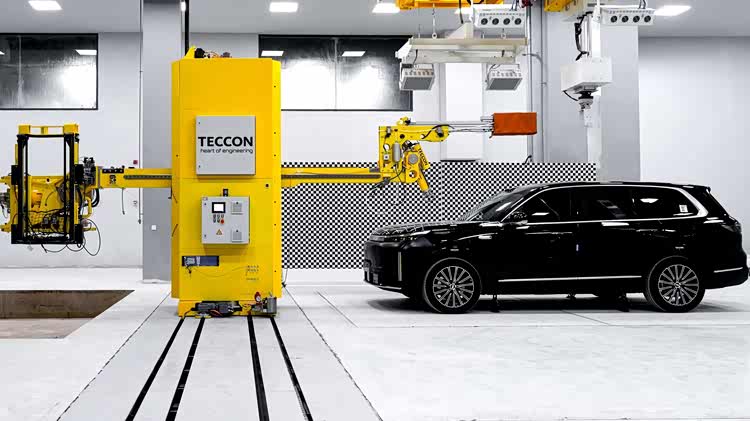 以0.023毫米高扫描,将车身、座舱和动力电池包等物理形态实时转化为三维点云数据模型。
