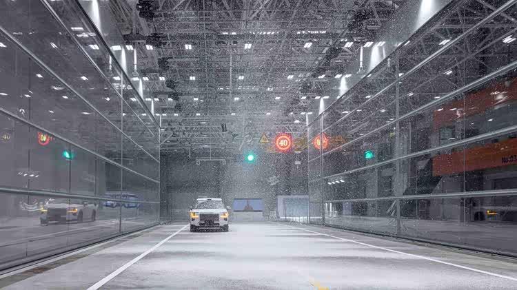主动安全能力测试:雨天路面湿滑会影响制动距离,雨水附着摄像头、激光雷达会干扰辅助驾驶系统的判断,逆光可能导致驾驶员瞬间“失明”,对向强光易引发判断失误,闪电则可能干扰车辆电子系统。验证车辆在这些极端环境下,刹车系统是否灵敏、传感器是否能保持清晰视野,灯光穿透力是否达标等。