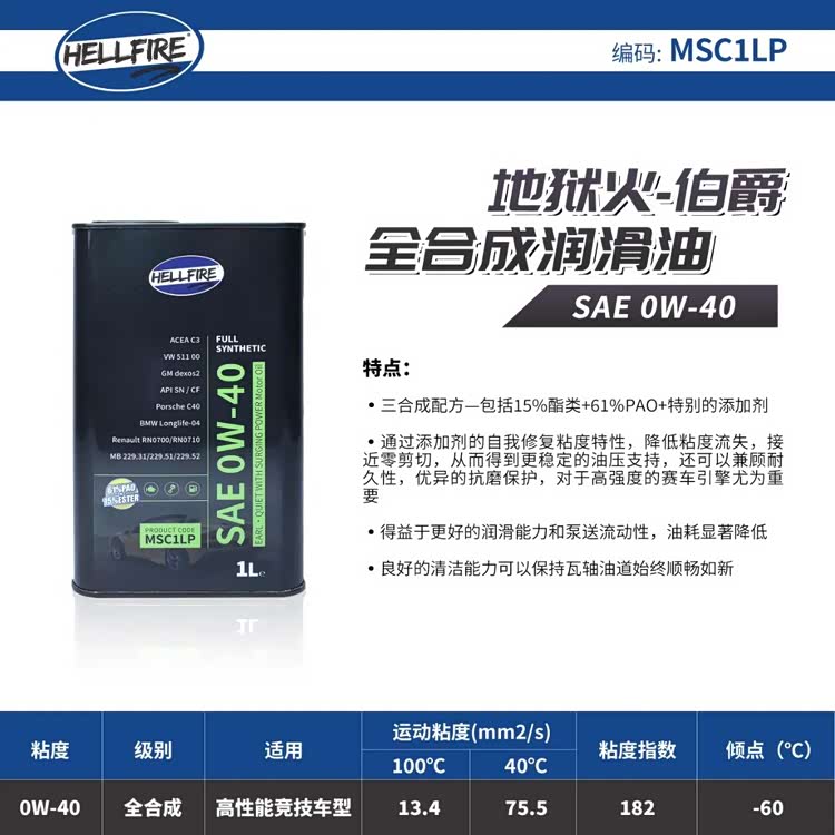 当一台宾利跑车驶入保养车间,选择什么样的机油才能匹配其极致性能?HELLFIRE地狱火给出了答案 ——伯爵全合成润滑油(SAE 0W-40),以国产机油的硬核品质,为豪华超跑筑起动力保护屏障。