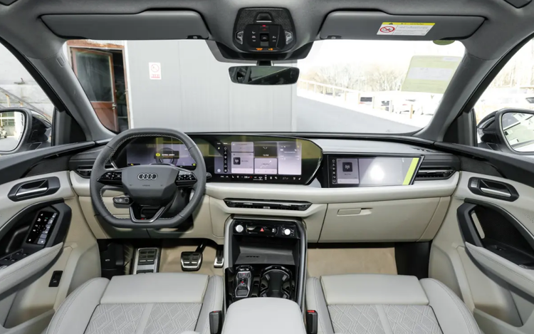 不仅外观,车内设计方面同样焕然一新。全新一汽奥迪Q5L车内设计与全新A5L十分相似,环抱式座舱布局搭配液晶仪表与中控车机所组成的双联屏,科技感直线上升;方向盘换装全新样式,并且副仪表区域电子挡把也更换全新的滑块设计,更加时尚、精致;值得一提的是,新车还搭载副驾娱乐屏,整体的智能化打造更加接近新能源产品。