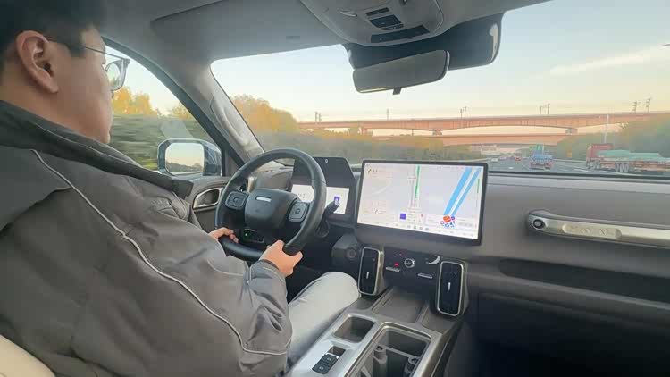 我这次开的大狗正好是带科技包的,我实际体验下来,属于能用但不惊艳,稳定性没什么毛病,但整体逻辑还是以自驾为主,像是打灯变道、自动进出匝道之类的功能都是没有的,更不用说什么城市NOA、高速NOA了,它主要的功能就是自适应巡航和车道保持。