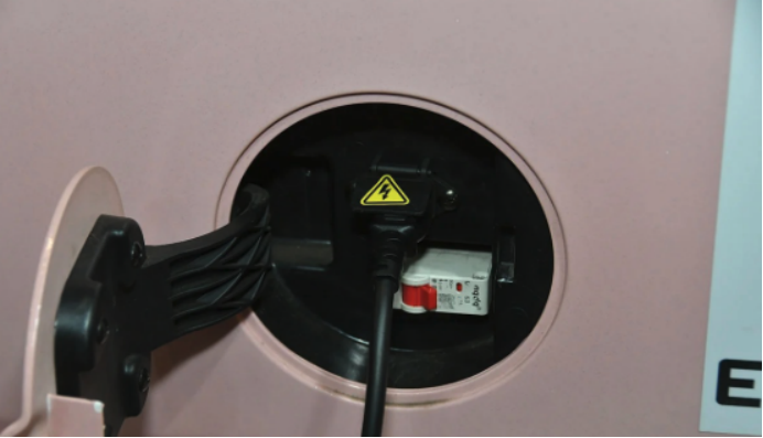 图:充电口位于车尾,车牌上方,不过,这个“气闸”断电开关就真的有点掉价了。
