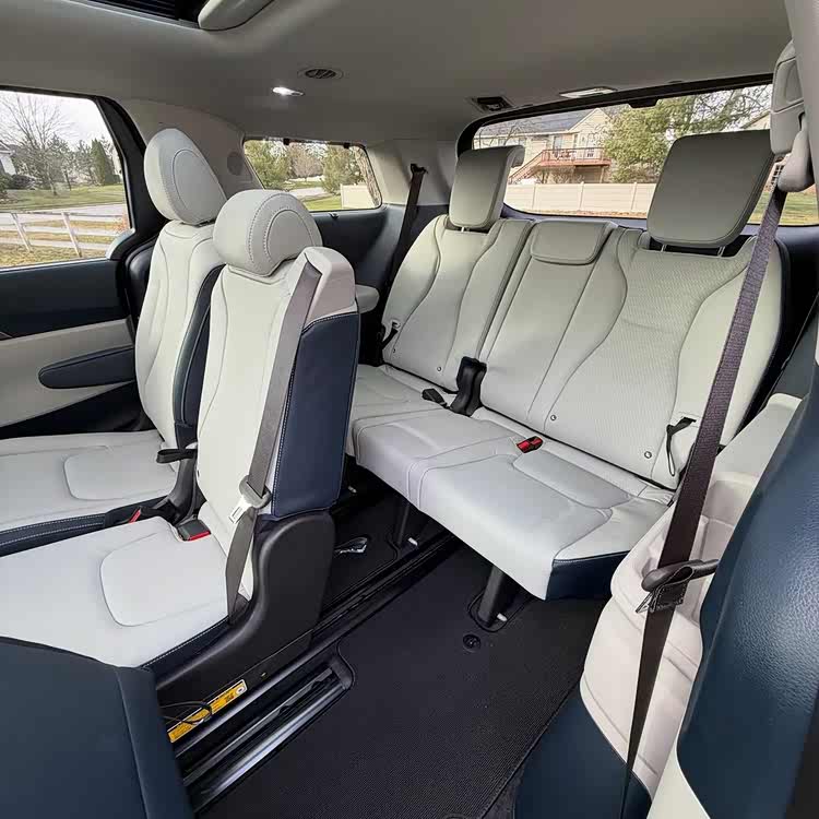 内饰方面, 新车继续采用悬浮一体式屏幕设计,带来一定的科技感。同时,新车采用了旋钮式换挡机构。此次,新车主要对配置进行了升级,而后排还新增了14.6英寸显示屏可选,并且提供影音娱乐系统。