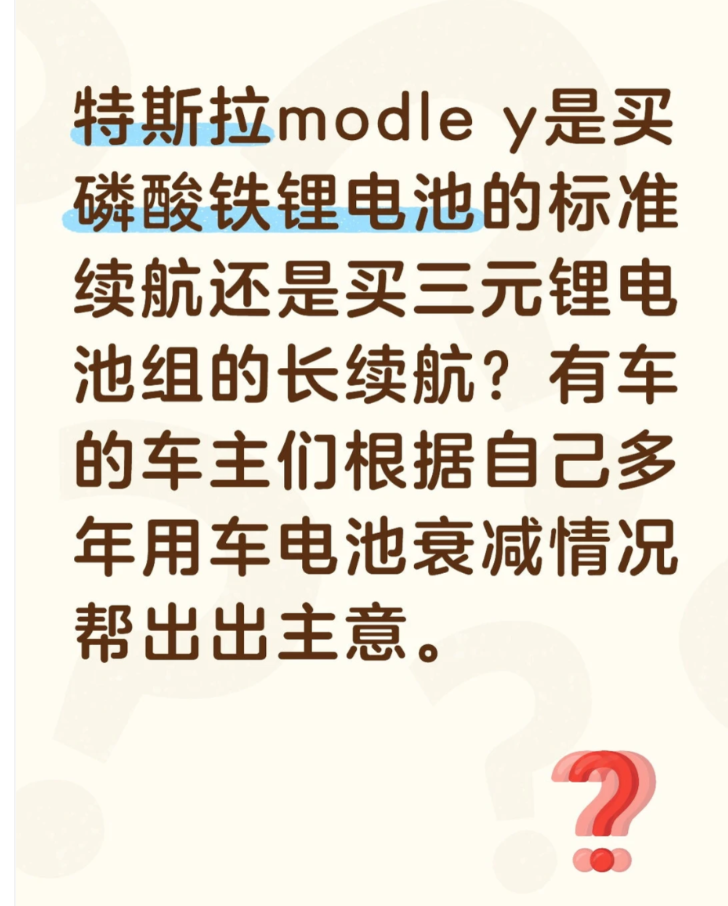 车家号·0浏览·2025-12-17 17:48 · 广东“Model Y 选标续磷酸铁锂还是长续三元锂?” 车主纠结的根本不是 “续航差多少”,是特斯拉没说清的 “电池衰减双标”。