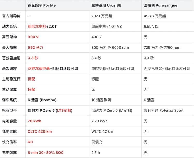 主要性能参数可以参考这张表,对标的正是兰博基尼Urus和法拉利Purosangue。