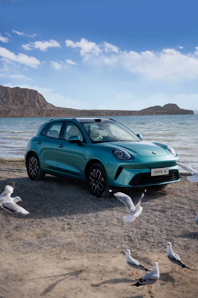 在外观设计方面,欧拉5整体造型较为圆润且紧凑,前脸采用封闭式设计,标志性的圆形大灯组赋予其灵动“萌趣”的视觉感受,下方以纵向通风开口来点缀,提升了层次感。值得一提的是,车顶前方装备了激光雷达模块,代表其具备高阶智能驾驶能力。车身侧面线条非常流畅,采用传统机械式门把手设计,并配备18英寸轮毂,视觉效果非常饱满。车尾设计简约,车顶带有扰流板,尾窗下侧使用贯穿式尾灯组,尾门中央处嵌入“GWM”标识。戏外,新车提供塞纳灰、白崖白、林芝红、赛里木湖蓝及沙洲米等活力车色,为年轻用户提供更具个性化的选择。
