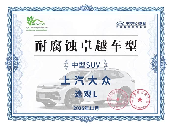 2025年,上汽大众ID.3第三次荣获NEV-CACSI纯电动紧凑型轿车用户满意度冠军,这个成绩印证了其新能源产品的用户认可度。从单一车型的口碑积累,到全序列的体系化布局,上汽大众的新能源“第二曲线”,正在加速破局。体系的韧性,才是抗风险的核心2025年,上汽大众在质量领域堪称“大丰收”。中国汽车质量委员会颁发的“质量进步奖”、途观L获评“2025年耐腐蚀卓越车型”、途昂Pro斩获“中大型SUV车型奖”、ID.3三连冠NEV-CACSI等等,这些奖项不是凭空来的,而是源于贯穿产品全生命周期的严苛标准。