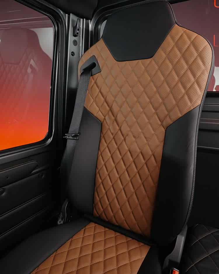 前脸运用了极具力量感的设计,中网运用了宽大的布局,内部带有单横条式的造型,前包围也是采用了硬朗的越野设计,并且带有倾斜角较大的风格。侧面有着硬朗的车身线条,有着很高的车身高度,轮毂和轮胎都是采用了巨大的造型,提供简约的车身设计,后视镜被电子摄像头取代,侧裙也是采用了硬朗的风格,新车有着强大的越野性能。