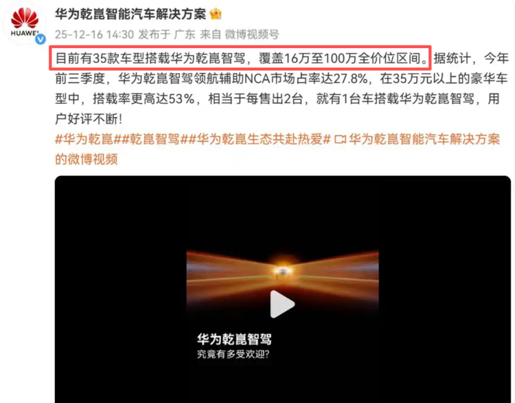 不可否认,华为在智能汽车领域的技术积累与品牌影响力,确实在很大程度上推动了国内新能源汽车产业的发展。