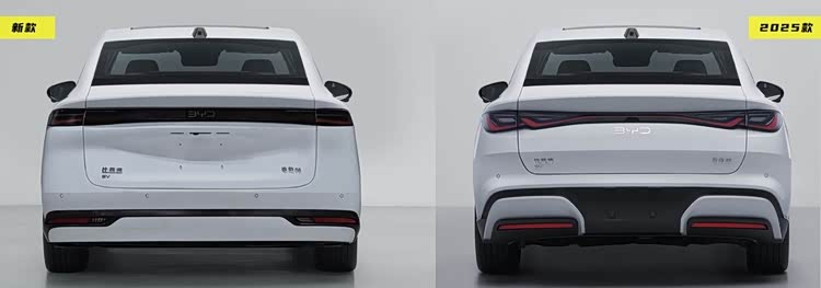 车身侧面,新款海豹06 EV和在售车型一模一样,都是将腰线和侧裙采用上挑的设计手法,带来更多的运动气息。门把手继续采用半隐藏式设计,搭配同款轮毂样式,并提供17英寸和18英寸两种规格。车尾部分,新款海豹06 EV顺应前脸的简洁风格,将贯穿式尾灯造型和后包围改得更加规整,牌照位置也从后保险杠移至后备厢盖。整体来看,新款海豹06 EV不仅削减了运动风格,还失去了一定的辨识度。
