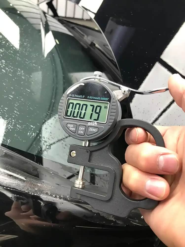 实测耐紫外线仅300小时(QUV加速老化测试),不到1年就会发黄脆化;且无自修复能力,轻微划痕无法复原。最大隐患是撕膜时易留残胶,清理需抛光,反而损伤原厂漆,仅适合10万内短期代步车临时防护。
