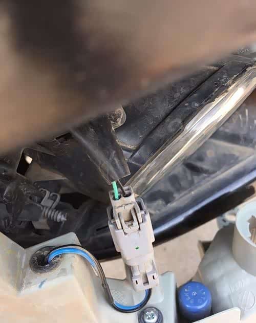 接着,注意大灯后部的线束连接,更换示宽灯时无需拆卸线束。然后揭开大灯后部的橡胶后盖,进入下一步操作。