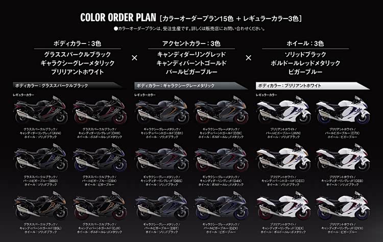 同时,铃木摩托也推出可依个人喜好自由搭配的颜色订制方案,提供外观、饰条与轮圈多种配色组合,采接单生产,并预计于2026年1月7日开始受理。售价方面,标准版为229万9,000日元,颜色订制版则为235万4,000日元(约合人民币10.6万元)。