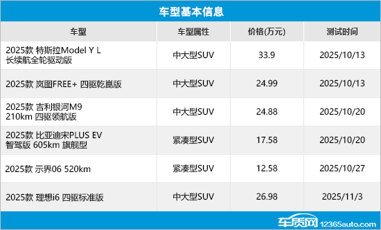 本期选取的6款车型包括2款紧凑型SUV和4款中大型SUV,涵盖自主、海外品牌,并且均为新能源车型。