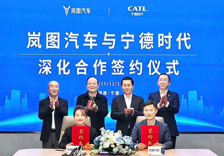 【2025年12月18日,宁德】12月17日,岚图汽车与宁德时代正式签署十年长期深化合作协议,双方将在新技术合作、产品供应、品牌共建、全球市场协同等领域展开全方位深度协同,确保岚图汽车未来动力电池的稳定供应与技术领先性,持续提升其在电池技术与供应链安全领域的综合竞争力。