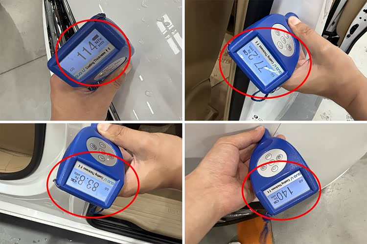 现在我们用漆膜仪开始检查漆面,数据比较直观,大家直接看就行,我主要挑几个重点去说,大家看下图↓