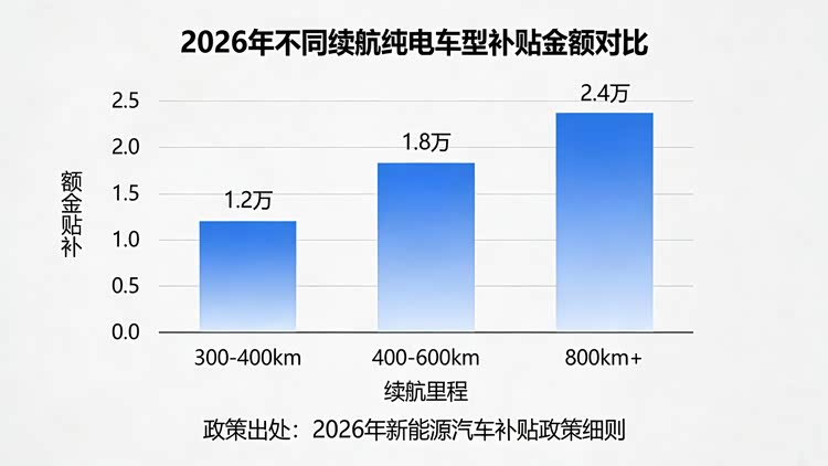 纯电车型按续航分级补贴:300-400公里补1.2万元,400-600公里补1.8万元,600公里以上补2.4万元。插混(含增程式)车型门槛提升,需满足WLTC工况纯电续航≥100公里,且亏电油耗低于国标限值70%-75%,达标后统一补贴1万元。对比2025年及以前政策,插混车型首次明确续航门槛,纯电车型新增《电动汽车能量消耗量限值》(GB36980.1—2025)要求。