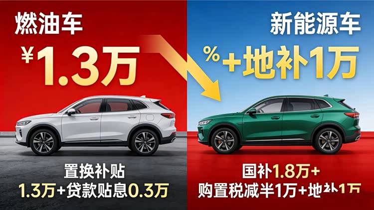 燃油车型:20万元2.0升及以下车型置换可享1.3万元补贴,叠加贷款贴息(年贴息1%,最高省3000元),总成本降低8%。