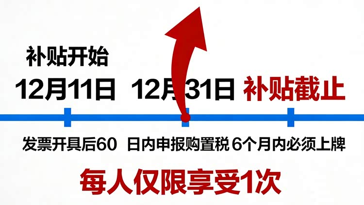 补贴适用时间为2026年1月1日至12月31日,新车发票开具后60日内需申报购置税,6个月内必须上牌。旧车需在申请人名下注册满1年,通过正规报废或过户处置,新旧车主信息需一致。个人名下2辆及以上汽车或家庭年收入超45万,补贴减半或取消,每人仅限享受1次。