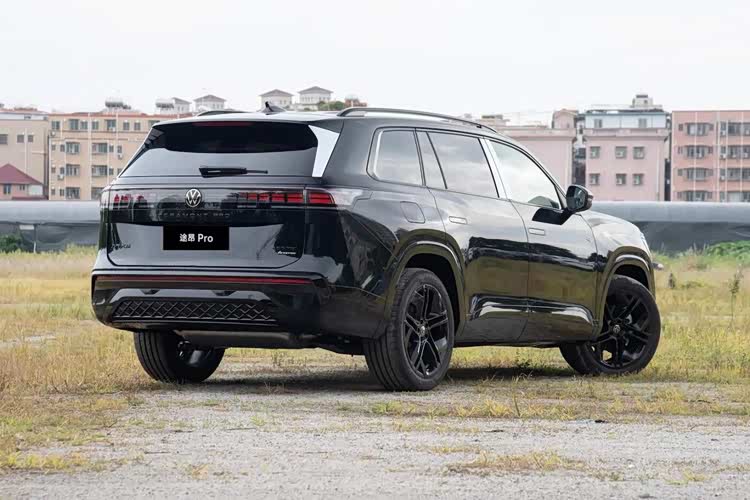 而在运动风格版本中,途昂Pro不光用上了更大面积的烤漆材料,更扩大了导流孔的黑色包覆范围。配合交错的中网、插入气道口的扰流板,还有轮眉、轮毂、行李架乃至支柱等等区域的全黑涂装,它甚至会让我想到过去在途锐上见到过的曜黑套件,而这二者之间还真就是一套逻辑下打造出来的。