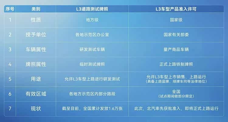过去几年,关于L3的讨论并不算少。不少车企都曾宣称自家产品 “具备 L3 级能力”,甚至手握各类 “测试牌照”,但这些所谓的L3始终停留在实验室或封闭道路层面。此次工信部的准入许可是一个明确的信号:L3的认定,必须以国家层面的产品准入和法规责任界定为准,而非企业自说自话。北新能源和长安的获批,是经过了严格的道路测试、技术评审和安全评估。这堵墙立起来后,那些没有拿到许可却仍在模糊宣传的车企,可以歇一歇了。