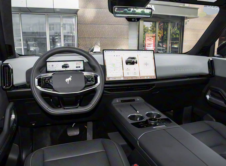 福特智趣烈马的核心竞争力,在于打破“城市通勤与越野探险不可兼得”的魔咒。动力层面,增程版以1.5T混动专用发动机+双电机组合,实现310kW综合功率与1220km综合续航,220km纯电续航满足日常通勤;纯电版则凭借332kW总功率与650km续航,兼顾性能与实用。全系标配的四驱系统与前后机械差速锁,即便单轮着地也能轻松脱困,30°接近角、32°离去角的通过性参数,在承载式车身车型中表现突出。