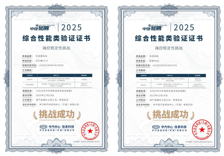 当温度计跌破零下20℃,压实雪面的摩擦系数仅为干燥路面的1/4,车辆的操控与安全性能正面临最严苛的考验。12月18日,在中国汽车技术研究中心主导的“2025极寒驾控安全主题技术验证”中,东风雪铁龙 凡尔赛C5 X(参数|询价)与东风标致508L双双完成极限挑战,将“操控稳定性挑战”验证证书收入囊中。这场在行业专家、线上观众及单板滑雪世界冠军张义威共同见证下的测试,不仅是对两款车型的硬核考核,更为冬季用车安全树立了可参考的技术标杆。