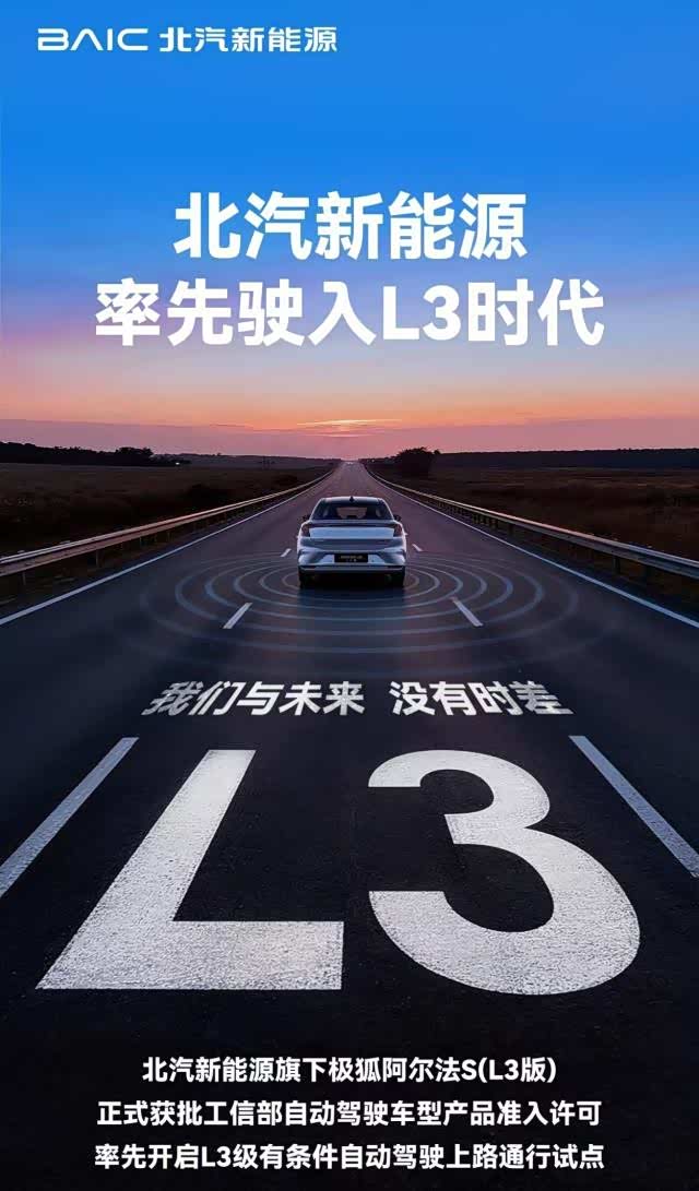 今年以来,业内多家主流品牌,开始对辅助驾驶从现阶段的L2级别,向L3级别晋升,之前已经有9家车企获得了L3级自动驾驶的测试资格,为啥北汽新能源获得工信部准入牌照的L3车型,直接领先了行业一步呢?