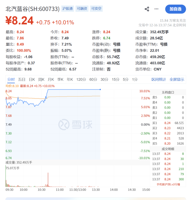 受此重磅消息驱动,北汽蓝谷(600733.SH)在12月16日开盘后股价强势涨停,充分体现了资本市场对其引领L3量产落地的高度认可。