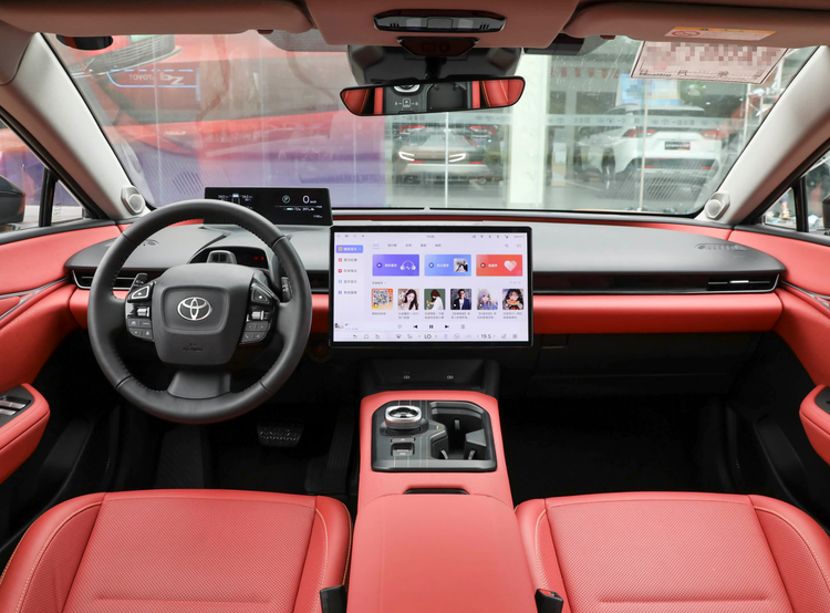 另外,丰田bZ5的低配车型配置颇为寒碜,缺失360度全景影像、蓝牙钥匙、方向盘加热、手机无线充电、后排中央扶手、氛围灯等,车辆只有主驾驶位支持电动调节,副驾驶位还是老旧的手动调节,座椅用的还是织物材质,唯有中高配车型才舍得给仿皮座椅。