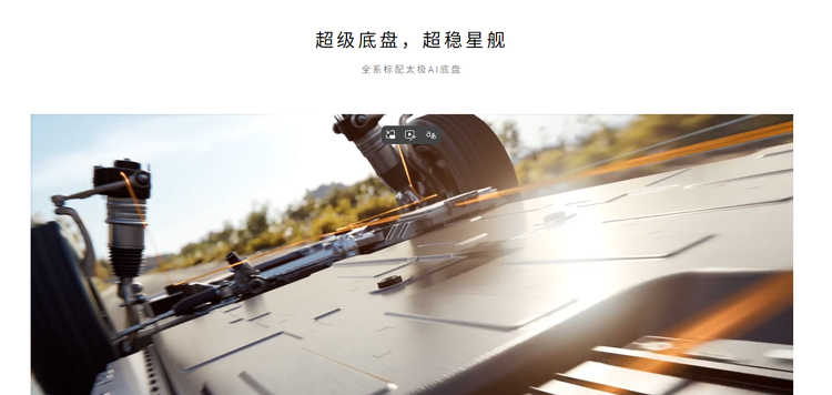 底盘配置堪称 “百万级下放”:前双叉臂 + 后 H 臂多连杆独立悬架、全铝底盘、智能双腔空气悬架(最大调节行程 90mm)、6 个舒适液压衬套,搭配同级领先的 6D 舒适防晕车算法与车端 + 云端 AI 路面预瞄(提前 200m 识别颠簸),实现 “起伏不颠、过弯不晃” 的乘坐体验。