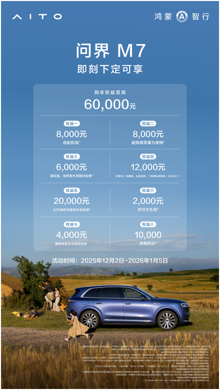 顶尖的产品力,需要配以充满诚意的服务政策,才能真正走进千家万户。全新问界M7深谙此道,推出了旨在降低用户拥有门槛、提升购车满足感的暖心权益。