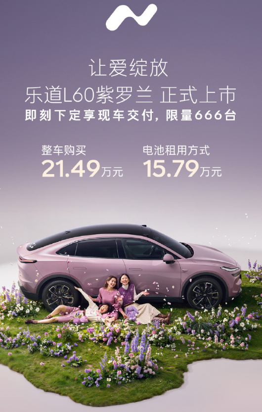 乐道L60紫罗兰限定版上市:限量666台,租电仅15.79万元