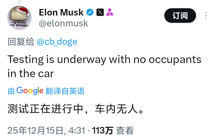 随即这一消息就得到了马斯克的证实,回应称:“测试正在进行中,车内没有人。”特斯拉已经开始在美国得克萨斯州进行全自动驾驶汽车测试。