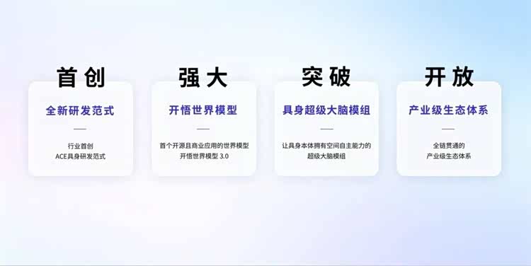 开悟世界模型3.0于12月18日面向全行业开源。通过领先的产品平台,大晓机器人向全行业开放API,让所有企业都可以使用开悟世界模型工具链,助力千行万业的发展,推动各类轻量化、定制化具身智能产品快速涌现,促进应用生态发展。