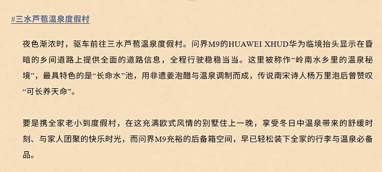 有问界M9在,凭借智能座舱、灵活底盘与可靠辅助驾驶,这样的逃离从不是偶尔的“奢侈”,而是周末里触手可及的小确幸,下次若再被钢筋森林的喧嚣裹住,只需轻点方向盘,一小时后,又是一场与诗意的相遇。