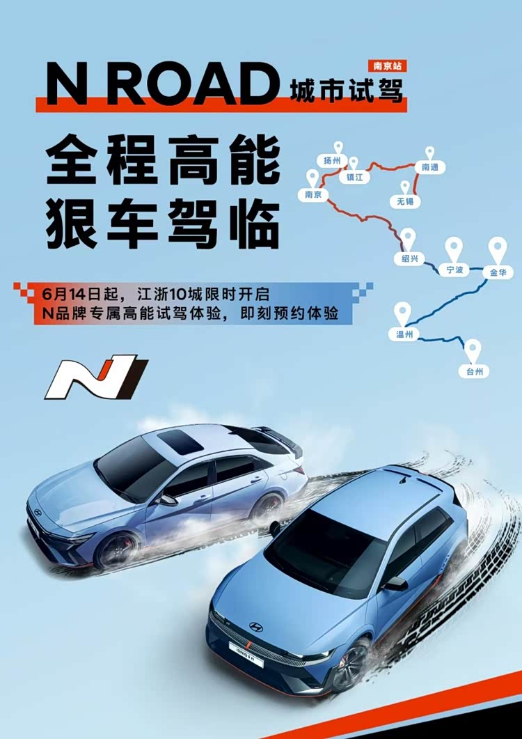除了专业的赛道及场地的活动之外,现代汽车N品牌将驾驶体验延伸至多元场景。N品牌在多个城市也开展了覆盖日常生活场景的N Road城市试驾活动。活动先后于无锡、南通、镇江、扬州、南京、绍兴、宁波、金华、温州、台州等十个城市展开,让参与者在城市道路中体验N车型的综合性能与驾驶乐趣,让“Never just drive”的驾驶乐趣不止于赛道,更体现在了街道。