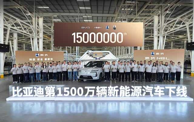2025年12月18日,比亚迪第1500万辆新能源汽车下线仪式于济南工厂举行。“大六座安全豪华SUV” 腾势N8L(参数|询价)荣膺第1500万辆下线车型这一殊荣,同时,此亦为腾势N8L的第15000辆下线。在过去的17年发展历程中,比亚迪自达成1000万辆的里程碑后,仅耗时13个月便跨越至1500万辆的新高度。比亚迪已然成为超千万车主的新能源首选,再度刷新了中国新能源汽车发展的“加速度”。这一卓越成就,标志着中国汽车工业正式迈入全球引领的崭新阶段。