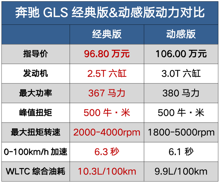 如果用一句话总结这台经典版GLS的话,那就是——动力弱了,油耗高了,但是价格也降了9万,我觉得性价比还是挺高的,一方面,6.3秒和6.1秒的加速,你其实感受不出来;另一方面,虽然油耗高了,但是你买车的时候省下的这9万块,够你加多少箱油了?你想想,是不是这么个道理?