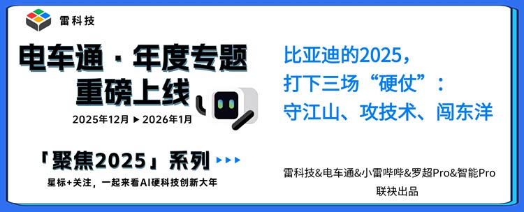 作为雷科技MCN年度专题的一部分,电车通将从产品、技术、战略三大核心维度,全面复盘比亚迪的2025,探寻这家行业龙头在变局中的破局之道。