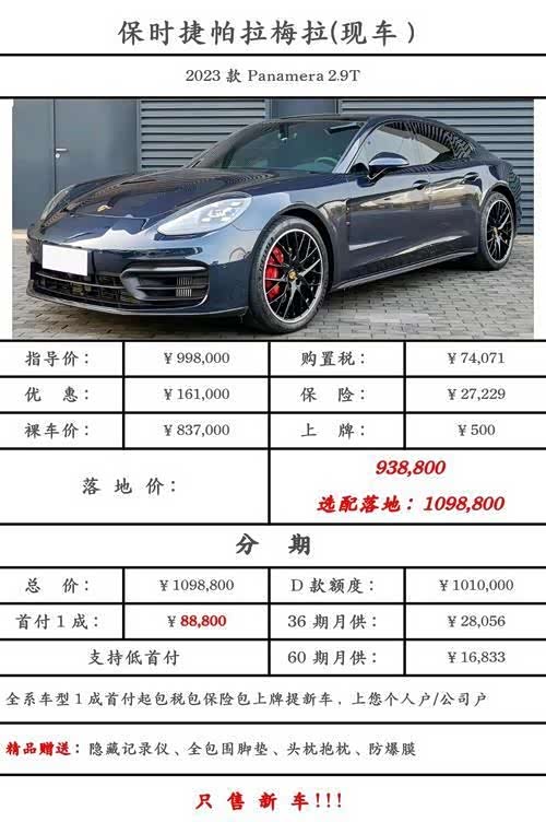 车家号·0浏览·2025-12-19 01:33 · 重庆帕拉梅拉(参数|询价),这款隶属于保时捷品牌下的轿车,凭借其出色的性能和精巧的设计,已经俘获了无数汽车爱好者的心。假如您有意通过贷款的方式来拥有这款帕拉梅拉,那么您只需支付车辆总价的20%作为首付。以100万元的帕拉梅拉为例,您首付仅需20万元,而余下的80万元则可选择分期偿还,当然,相应的利息也是需要考虑的部分。