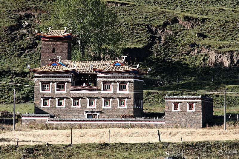 虽然都是藏族人,但他们的房屋并不相同。这一带的建筑有点儿像碉堡,外立面的装饰很漂亮。