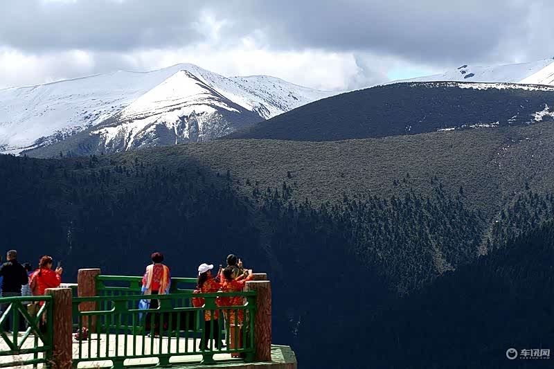 垭口处有个观景台,可以眺望南迦巴瓦峰。遗憾的是,我每次经过这儿,那座山都被云或多或少地遮挡,从没见过下图中的美景(下图为观景台门前的宣传画)。