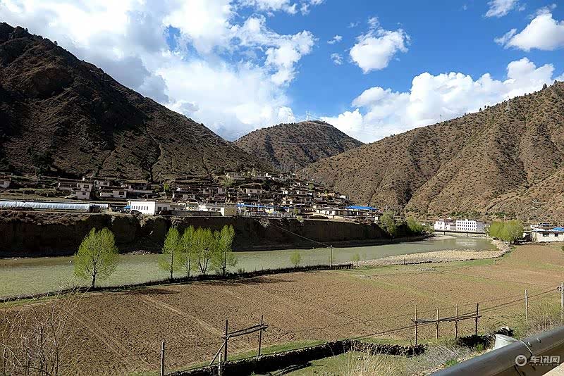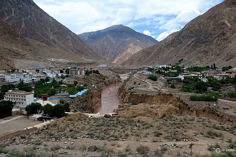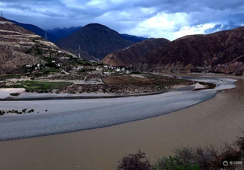 在巴塘住宿一晚,次日出县城10多公里,路旁出现了金沙江,江对面就是西藏。