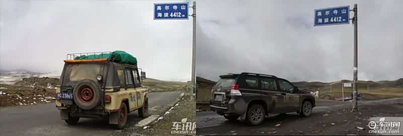 靠着隧道,几分钟便穿越了高尔寺山,令我感慨不已。2002年,我第一次驾车到此,翻山时辛苦至极(下图左);2012年再来,路面好很多,可依旧得爬到4412米的垭口(下图右)。
