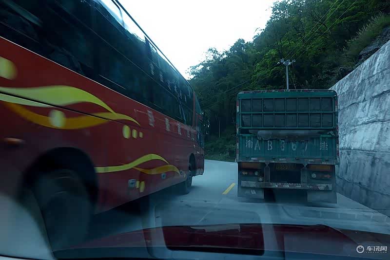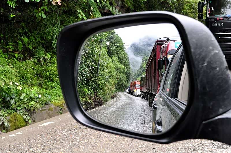 过了垭口,下山的路依旧是蜿蜒曲折,有许多急弯,必须放慢车速。在山道上,大货车过弯需要更多的空间,如果小车恰好也在此过弯,没给大车留出空间的话,就有可能堵住。所以,在弯道处,看到对面有大车,不妨立即停住,以免人家过不来,同时也带给自己安全。