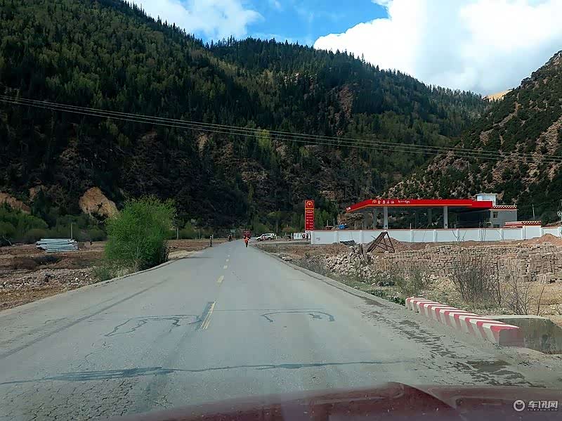 40公里维修路段之后,恢复为柏油路。路况变好的地方,有个检查站查验证件,旁边还有个加油站。顺便说一句,整个川藏线上无需为加油担忧,92与95都有,不仅每个县城都有2个以上的加油站,部分镇上也有加油站。绝大多数都能刷信用卡(我不用电子支付,没关注是否接受微信与支付宝)。