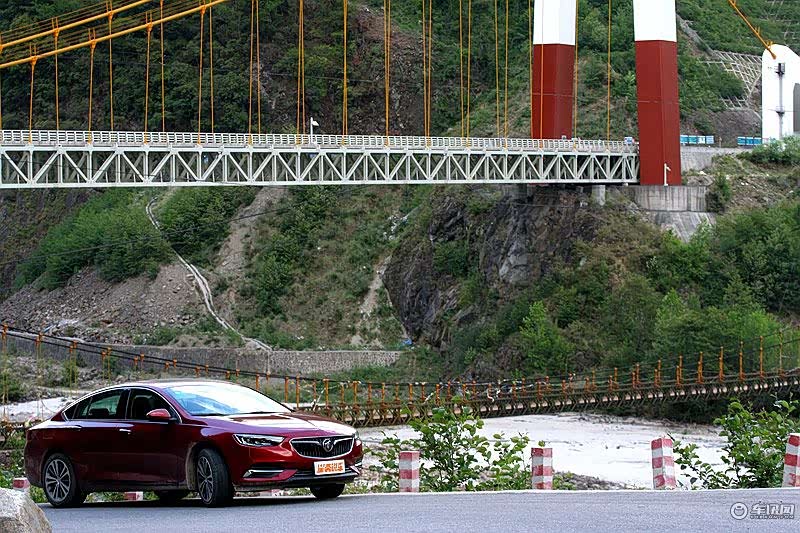 桥的正中央,有省界牌子。考虑到停车拍照可能会影响交通,于是,过桥进入西藏后,找个不碍事的地方,让君威与大桥合影。