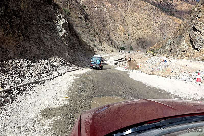 进藏后,318因施工中断了一小段,取而代之的,是河滩上的临时路。虽然不长,但轿车车身低,必须放慢车速,以免磕底盘。