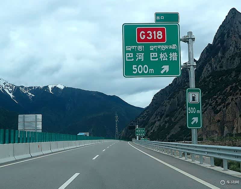 在此之前,曾有个巴松措出口。巴松措是个很美的湖泊,第一次走318,时间允许的话,应该去看看。当然,下高速还得再走40公里才到。